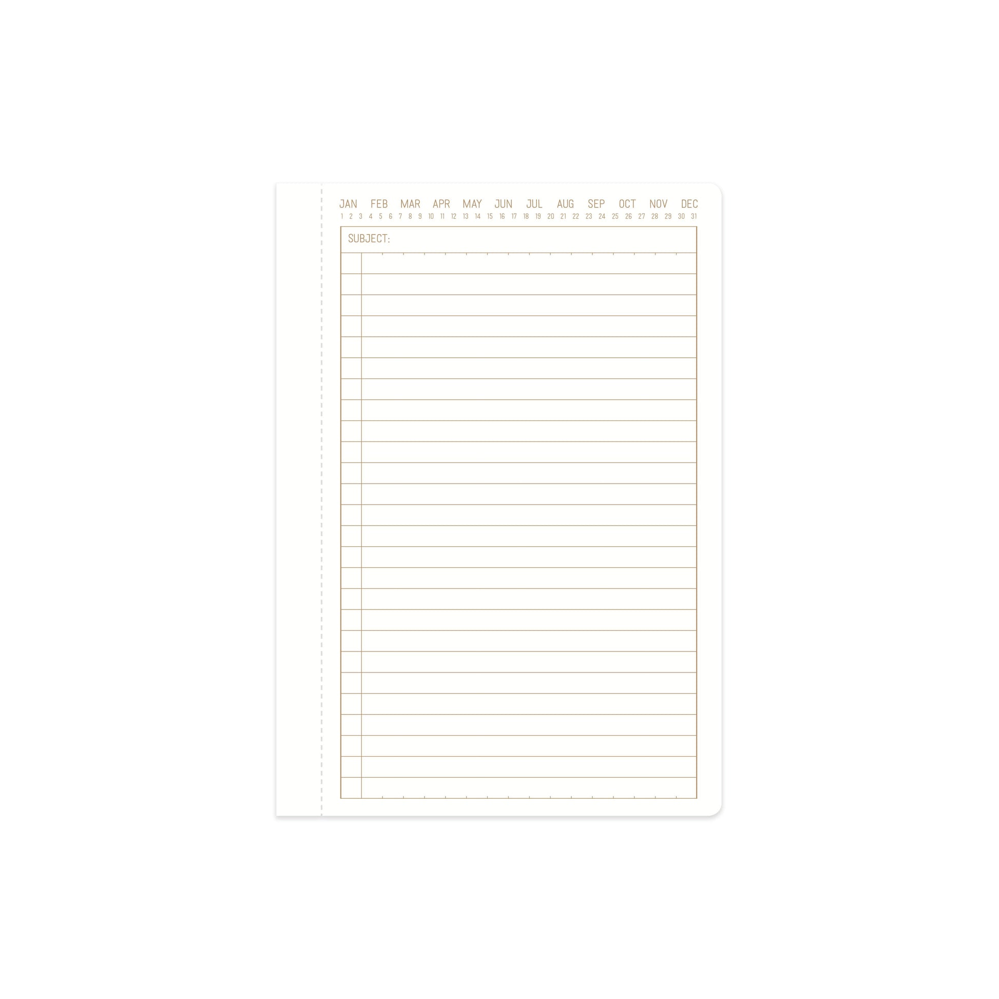 Compact and luxe, this Twin Wire Journal elevates everyday note-taking with a textured cover and a gleaming gold spiral. It lies flat for easy writing, while its refined interior details bring organization to work, school, or travel.