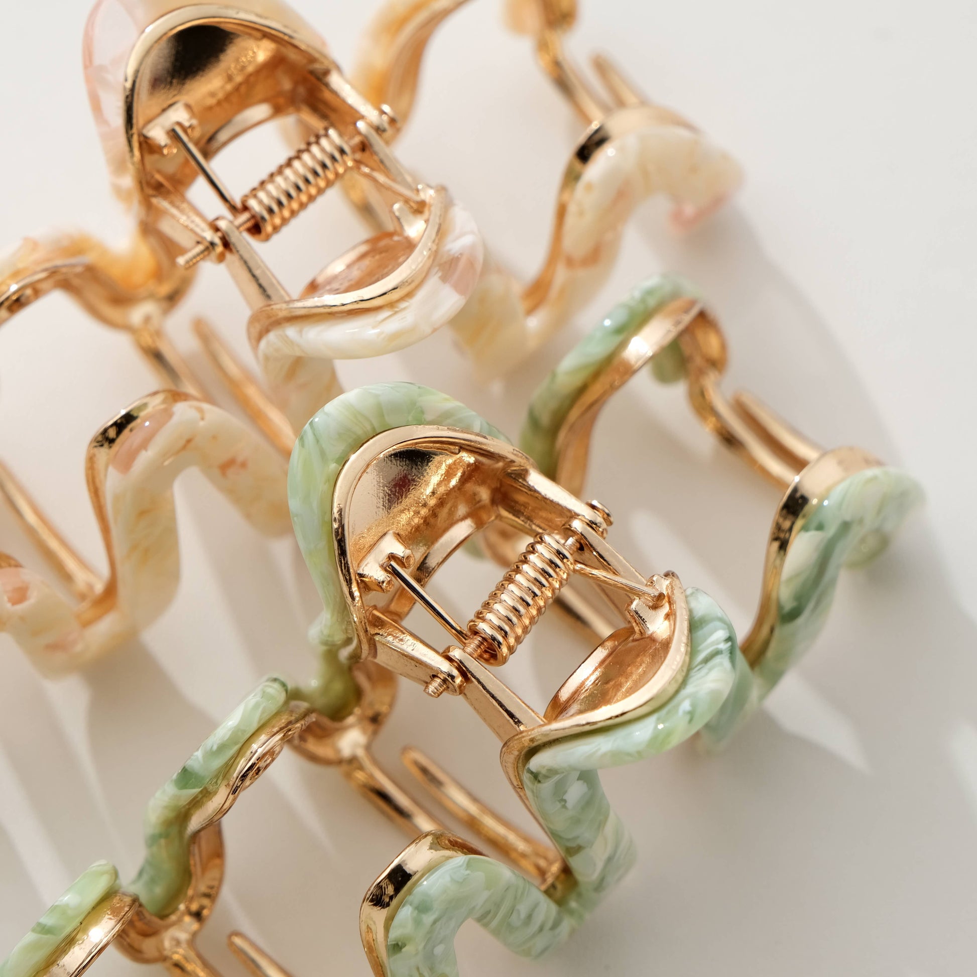 Featuring a squiggle design, this 4-inch metal claw is perfect for med/long hair. Features a metal base with a cellulose layer on top.