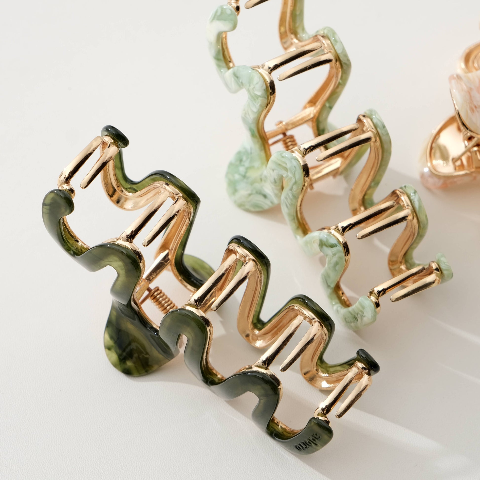 Available in Jade Green, Mint Garden, and Peach Blossom.